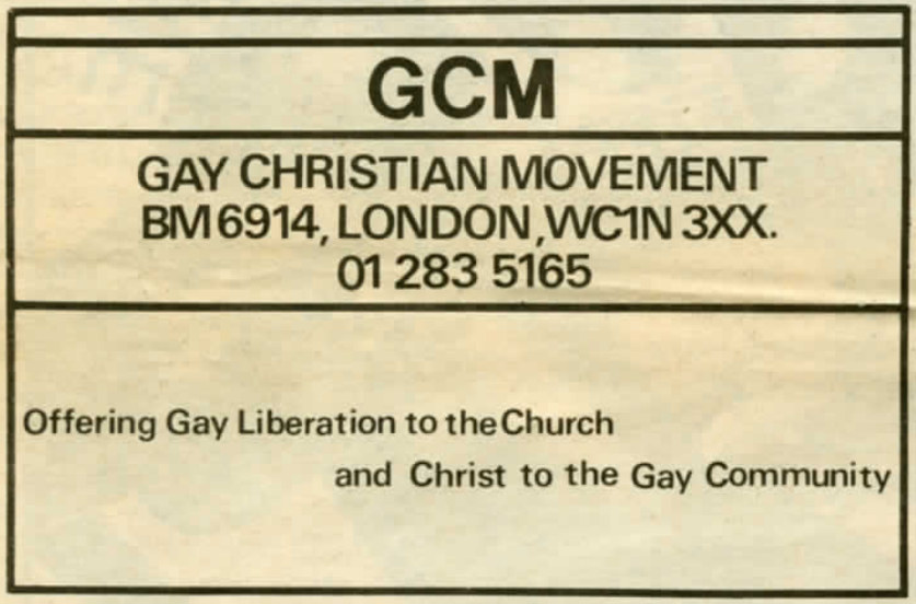 The national Gay Christian Movement was founded in April 1976 as an ecumenical (multi-denominational) fellowship and support organisation for gay Christians. A contact for Stoke appeared in Gay News soon afterwards. In1979 the contact listed in Gay News was well known community member and activist Keith Groom. The organisation was later known as LGCM (Lesbian and Gay Christian Movement) and more recently as OneBodyOneFaith.